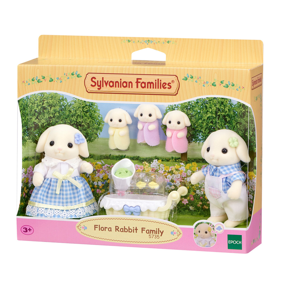Con todos ustedes ¡La Familia Flora! Nolan y Aria son el papá y la mamá de la Familia Conejo Flora. La Familia Conejo Flora incluye 2 figuras adulto 3 trillizos, además del carrito para los trillizos y un ramo de flores. Las flores de sus orejitas pueden intercambiarse.