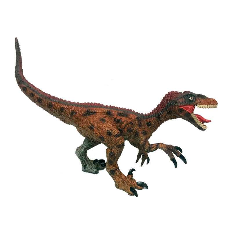 Este Dinosaurio Velociraptor XL con Sonido hará que al escuchar como ruge te parecerá mucho más real. Este dinosaurio es de colores marrón oscuro y marrón tierra. Su boca abierta manifiesta que puede que esté persiguiendo a su presa, ¡porque no se le ve precisamente tranquilo! Sus uñas son grandes y negras... ¡nadie se podrá escapar de él una vez sea atrapado! Pilas incluidas.