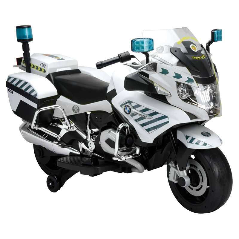 La moto de batería para niños de la Guardia Civil está lista para patrullar las carreteras. A los peques les encantará subirse en la moto y convertirse en un agente de tráfico. Tiene una batería de 12V, un motor de 30W, luces, música, marcha delantera y trasera, alcanza una veocidad máxima de 6 km/h y soporta un peso aproximado de 30 kg. Dimensiones: 123.3x54.2x76.1 cm.