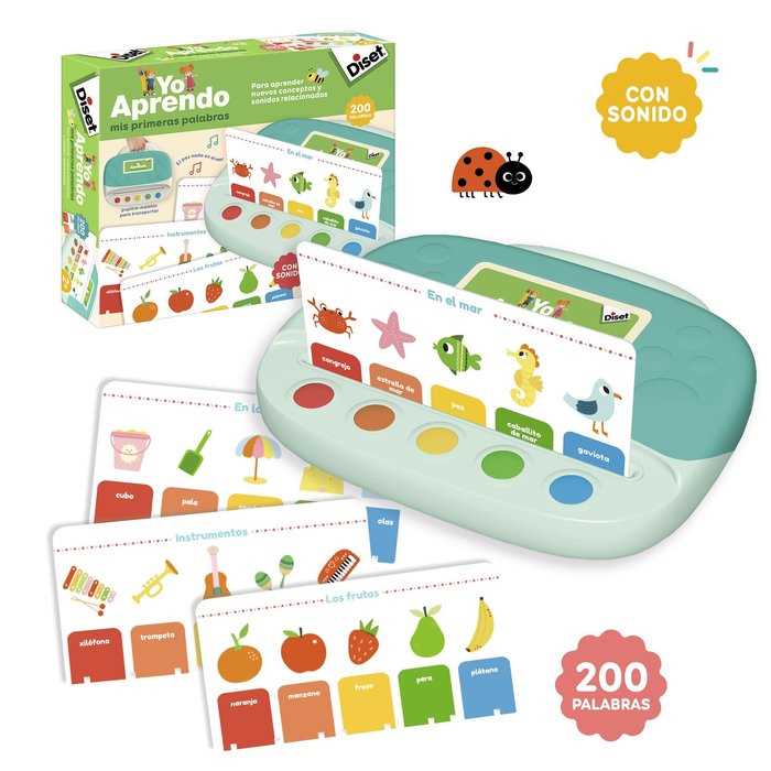Maletín educativo con 20 láminas impresas a doble cara para aprender 200 palabras diferentes. Los más pequeños aprenderán sus primeras palabras, descubrirán conceptos de su entorno y vida cotidiana, ampliarán su vocabulario y mejorarán su pronunciación.