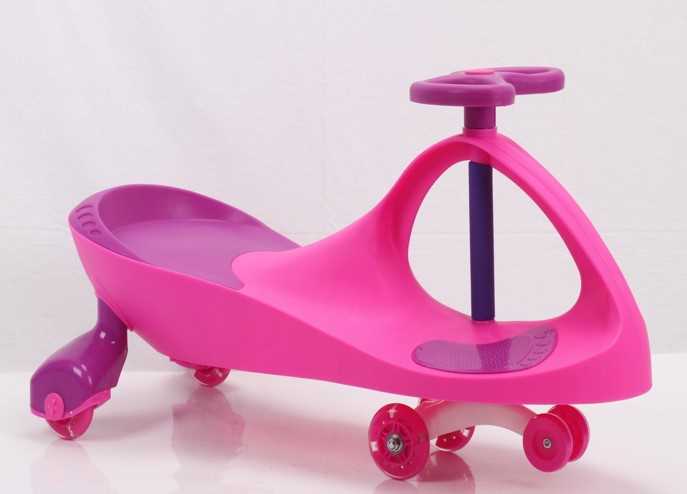 Este original vehiculo permite el movimiento solo con balancear el volante a derecha e izquierda,de este modo se deslizará.Divertido y seguro.En color rosa.