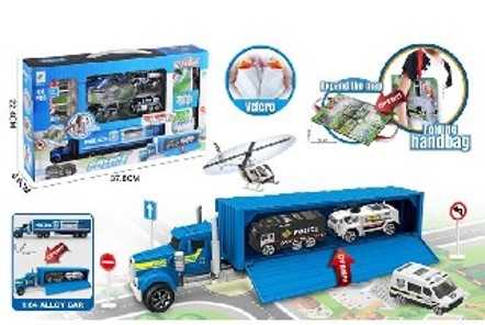 ¡Transporta los Vehículos Policia con el Camión de rescate! Rescata y defiende a todos los ciudadanos de los delincuentes gracias al camión de policía. Transporta hasta 2 vehículos a la vez. Llévatelo en cualquier lugar gracias a su bolsa de transporte fabricado de paño. ¡Abre la bolsa para encontrarte una ciudad! Junto con las señales de tráfico que incluye este set, juega con la alfombrilla y el camión. Un sinfín de diversión te espera con el Camión de Policía. El set incluye: Alfombrilla de juegos, Camión, 3 coches, 1 helicóptero