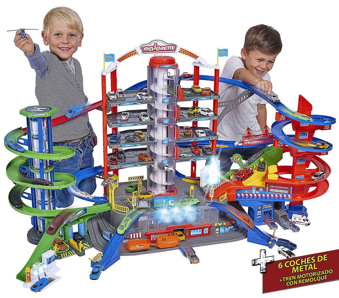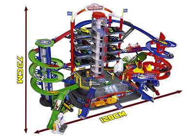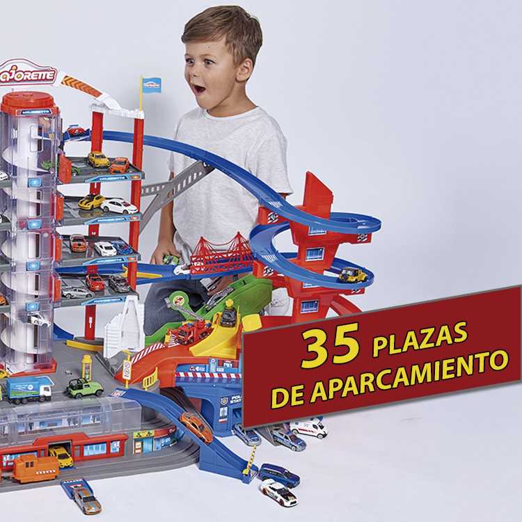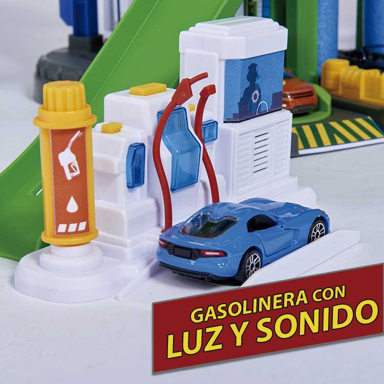 Consigue este nuevo y sorprendente garaje de gran tamaño, con hasta 7 alturas para jugar, ascensor motorizado, vía del tren, rampas en curva, taller y muchas sorpresas más. Un súper garaje fabricado en plástico resistente, con luces y sonidos que le dan un toque mucho más realista y divertido.
