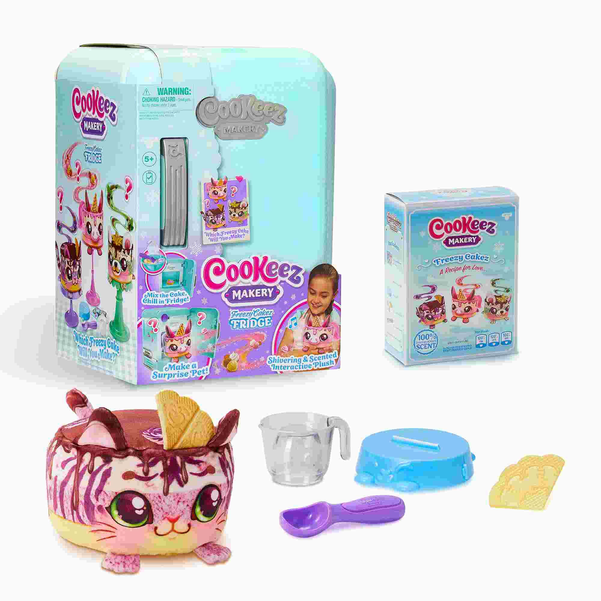 Para disfrutar de esta mágica experiencia solo tiene que crear la masa para tartas, moldearla y decorarla con el accesorio incluido. Mete tu tarta en la nevera mágica, programa el contador y ¡sorpresa! Tu masa de tarta ahora es un precioso y perfumado peluche Cookeez. ¡Una experiencia inolvidale para los peques de la casa!