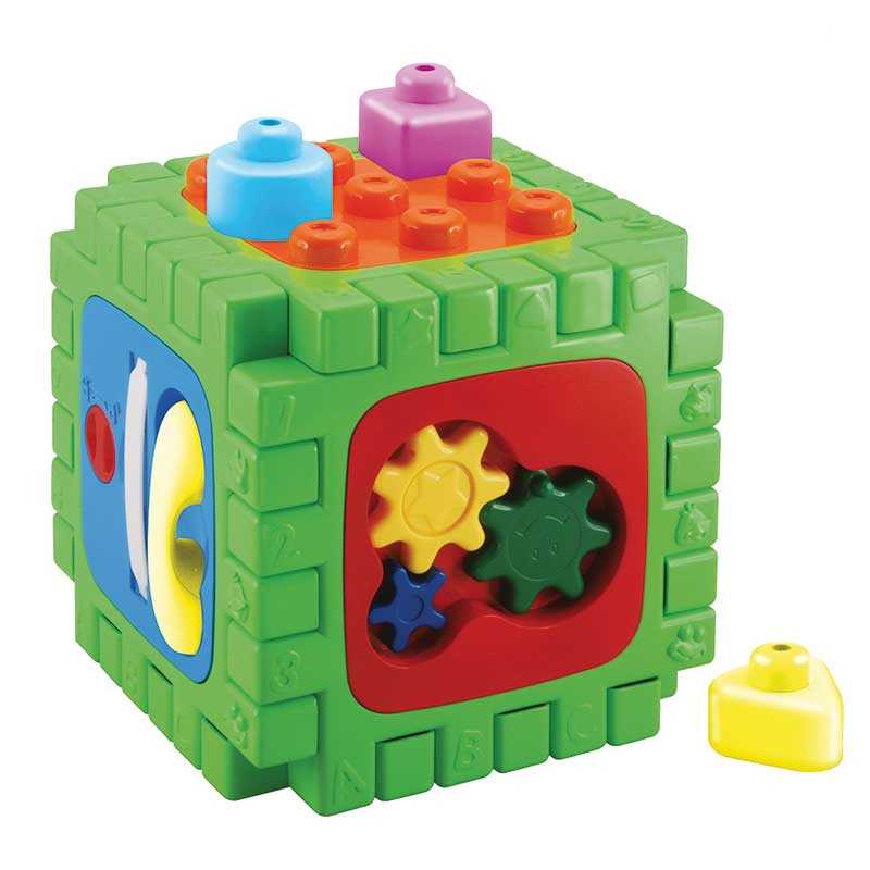 Este cubo de actividades para bebé hará a los niños desarrollar habilidades manuales y visuales. Además, con este cubo de actividades desarrollarán el oído gracias a los sonidos que emite al manipular las palancas, engranajes y bloques que contiene. Funciona con 3 pilas G13.