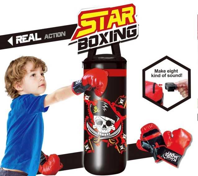 Saco de boxeo con guantes incluidos.