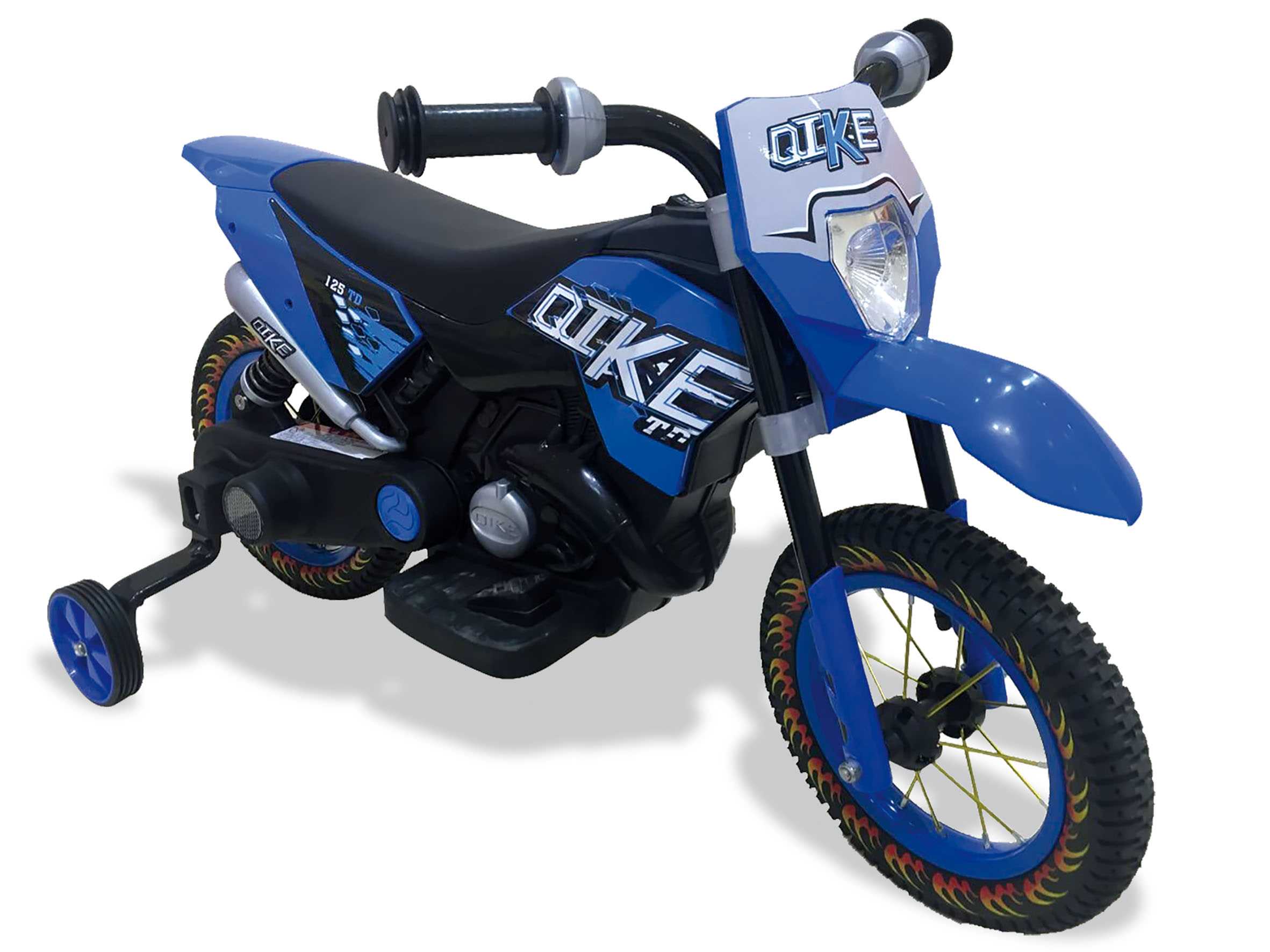 Esta Moto Cross Kids Eléctrica Infantil de la serie exclusiva Motoor Kids de Juguetoon. Esta magnífica moto a batería, de color azul, cumplirá los deseos de los pequeños amantes de las dos ruedas. La Moto Cross Kids Eléctrica Infantil tiene una batería de 6V 7 Ah, dos motores de 15W cada uno, luces, música y neumáticos decorados con llamas de fuego. Alcanza una velocidad máxima de 5 km/h y soporta un peso aproximado de 30 kg. Dimensiones aprox.: 100x51x73cm.