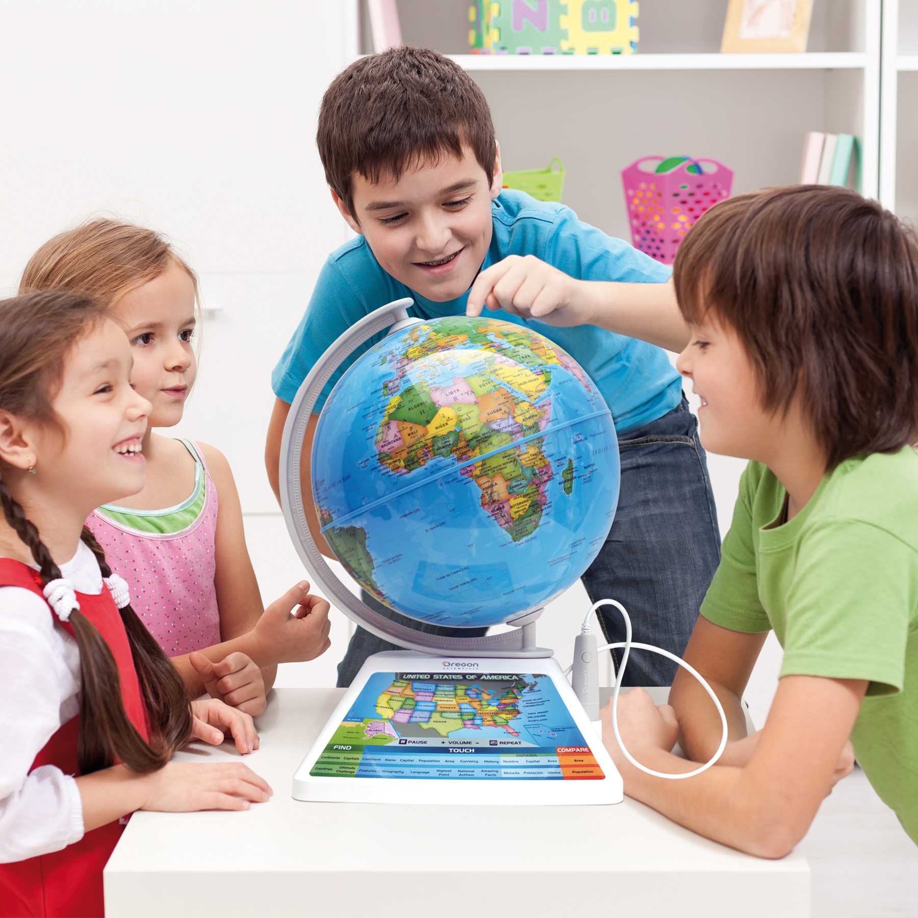 Globo interactivo educativo con más de 25 actividades educativas (19 en español y 6 en inglés) con 3 niveles de juegos y un desafío final. El niño podrá explorar más de 220 países y aprender sobre más de 4000 datos de interés.