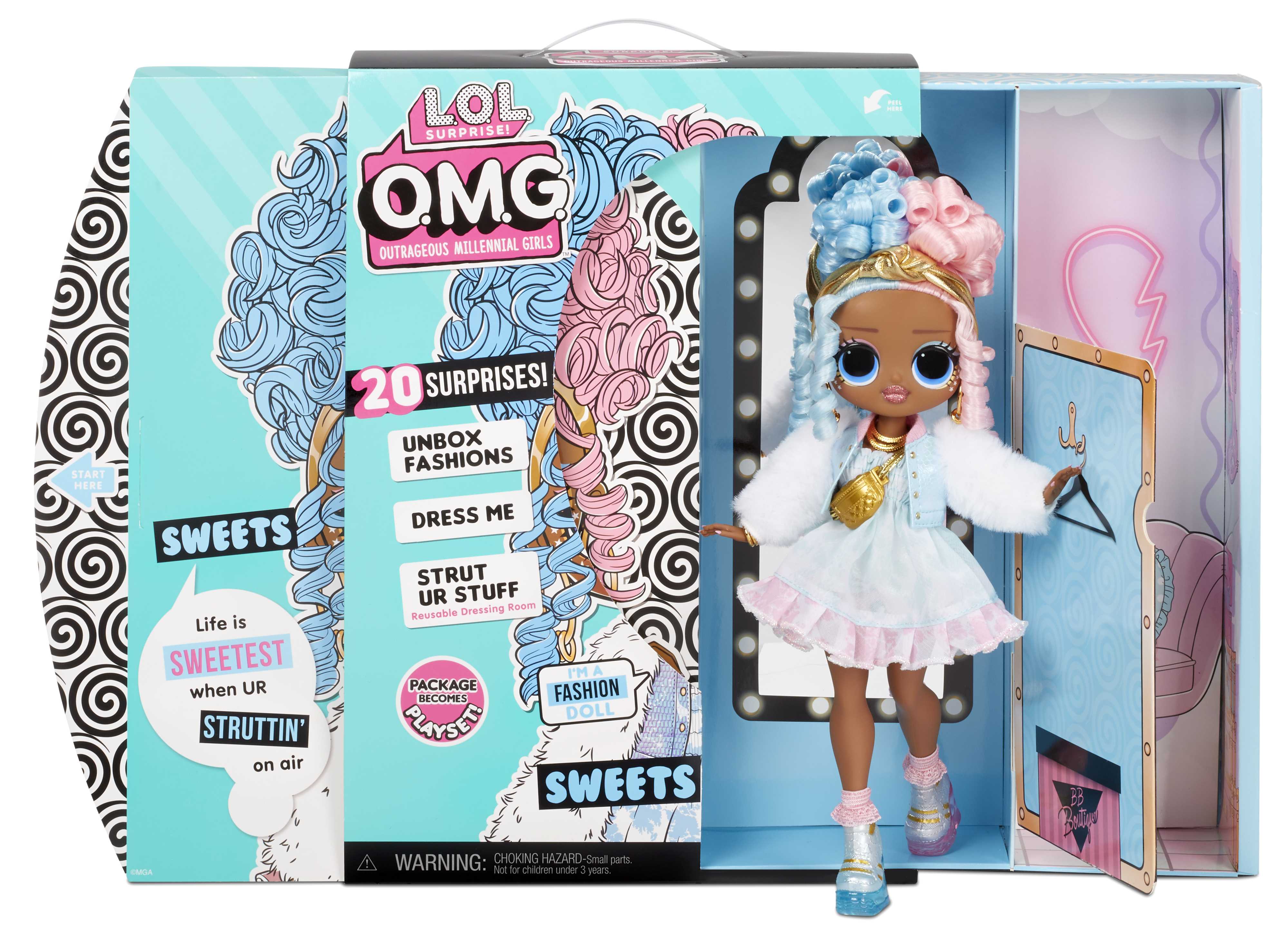 Descubre L.O.L. Surprise! O.M.G. fashion dolls con 20 sorpresas y un motón de accesorios. Son las hermanas mayores de tus personajes favoritos de L.O.L Suprise. El packaging se convierte en su camerino. Cada una de estas muñecas OMG vienen con un vestidor, una revista del horóscopo y una biografía con la personalidad de cada muñeca.