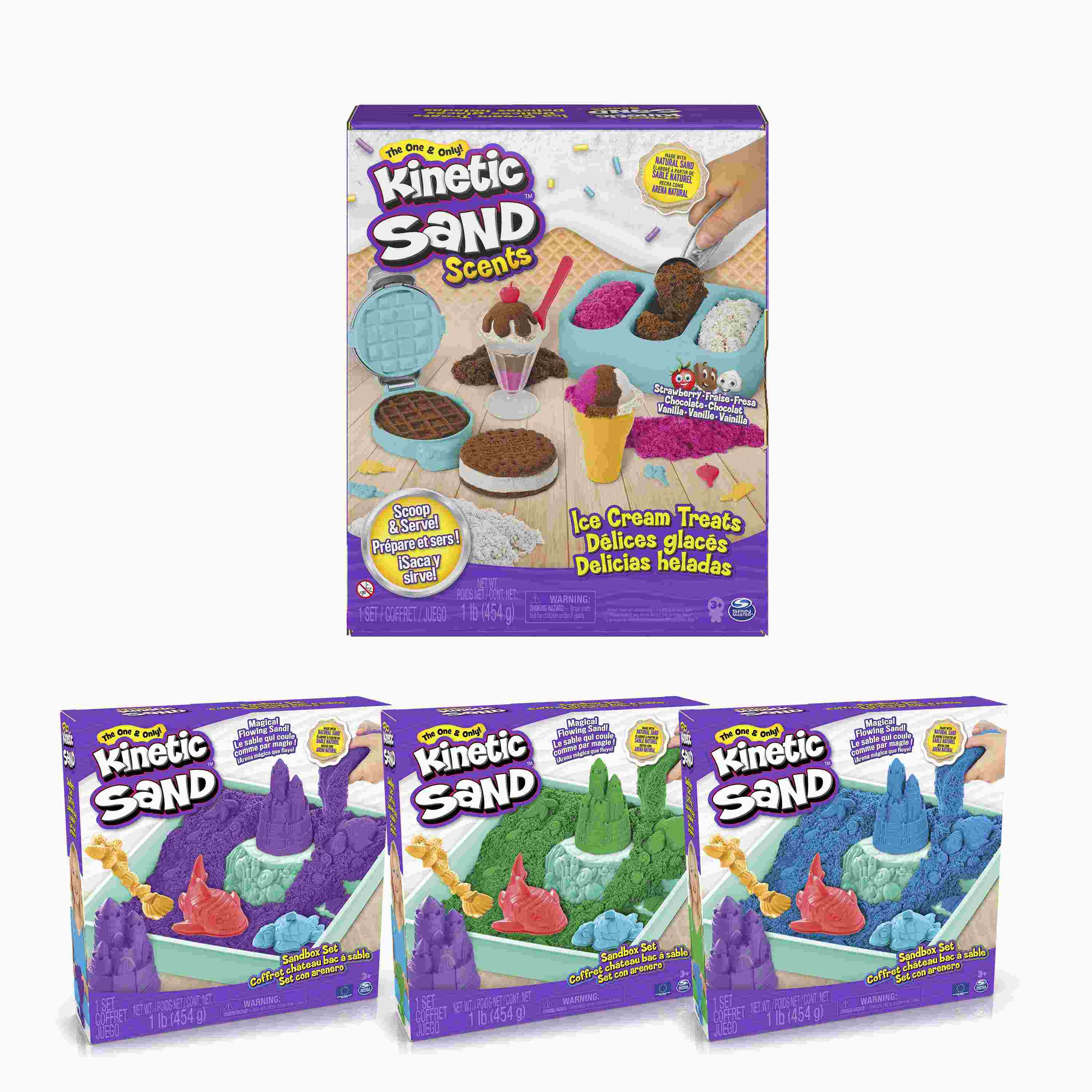 Consigue este increíble pack lleno de opciones creativas, un set muy especial por todos los accesorios incluidos, con los que moldear y jugar junto a la famosa arena mágica de Kinetic Sand. Esta arena es muy especial, pues está perfumada, no se seca, es muy fácil de limpiar y se adapta a todo lo que quieras crear. ¡Invita a toda tu familia y amigos a disfrutar de horas y horas de juego, creación y diversión! ¡Con olores de fresa, chocolate y vainilla para darle realismo a las creaciones!