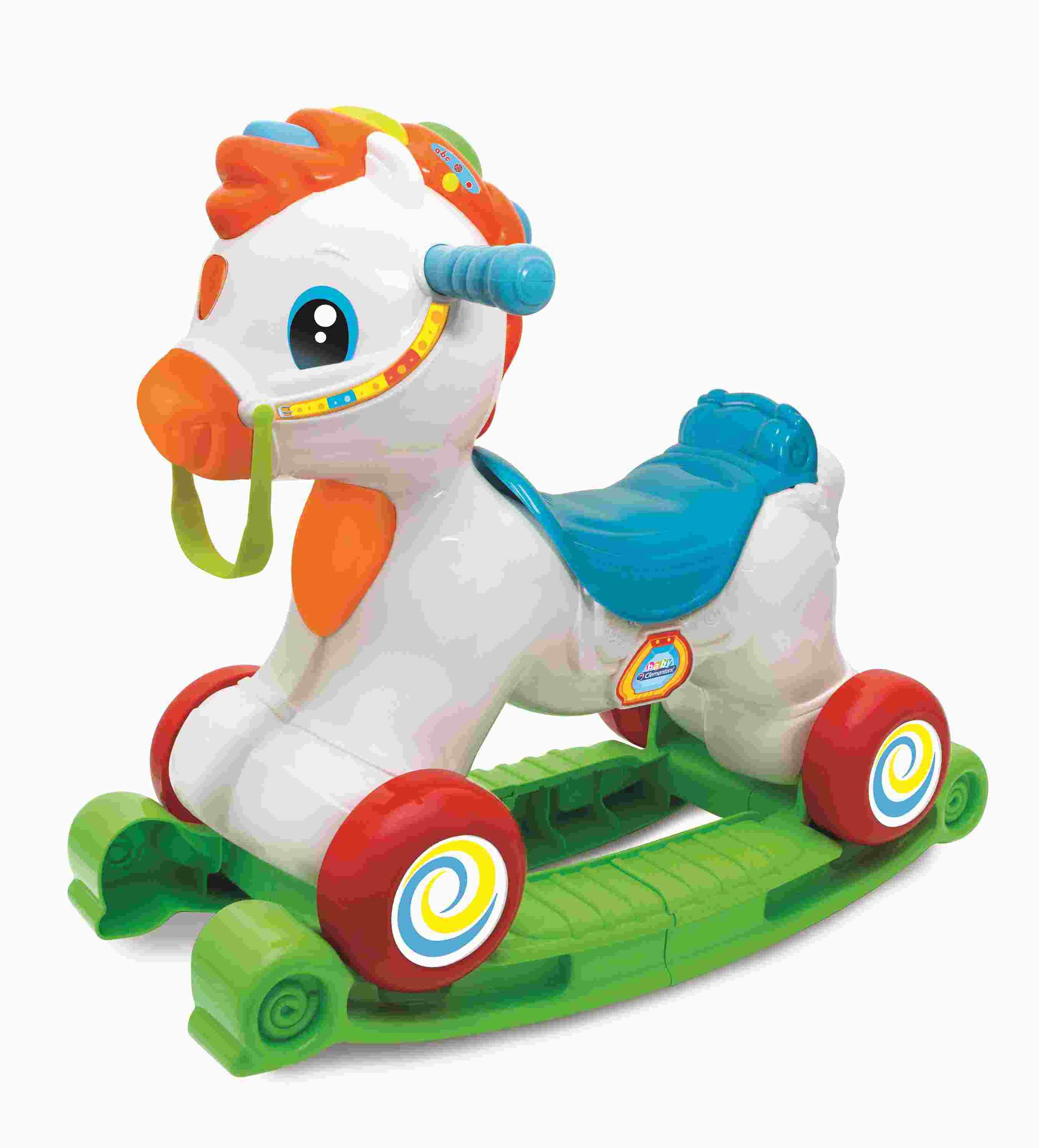 ¡Un fabuloso caballito balancín, que es también un correpasillos y un centro de actividades interactivo!