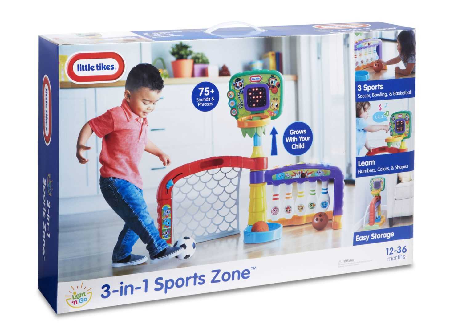 Mete un gol,tira a canasta o juego a los bolos.Tres zonas de juego en una,con luces y sonido.Tambien es plegable.