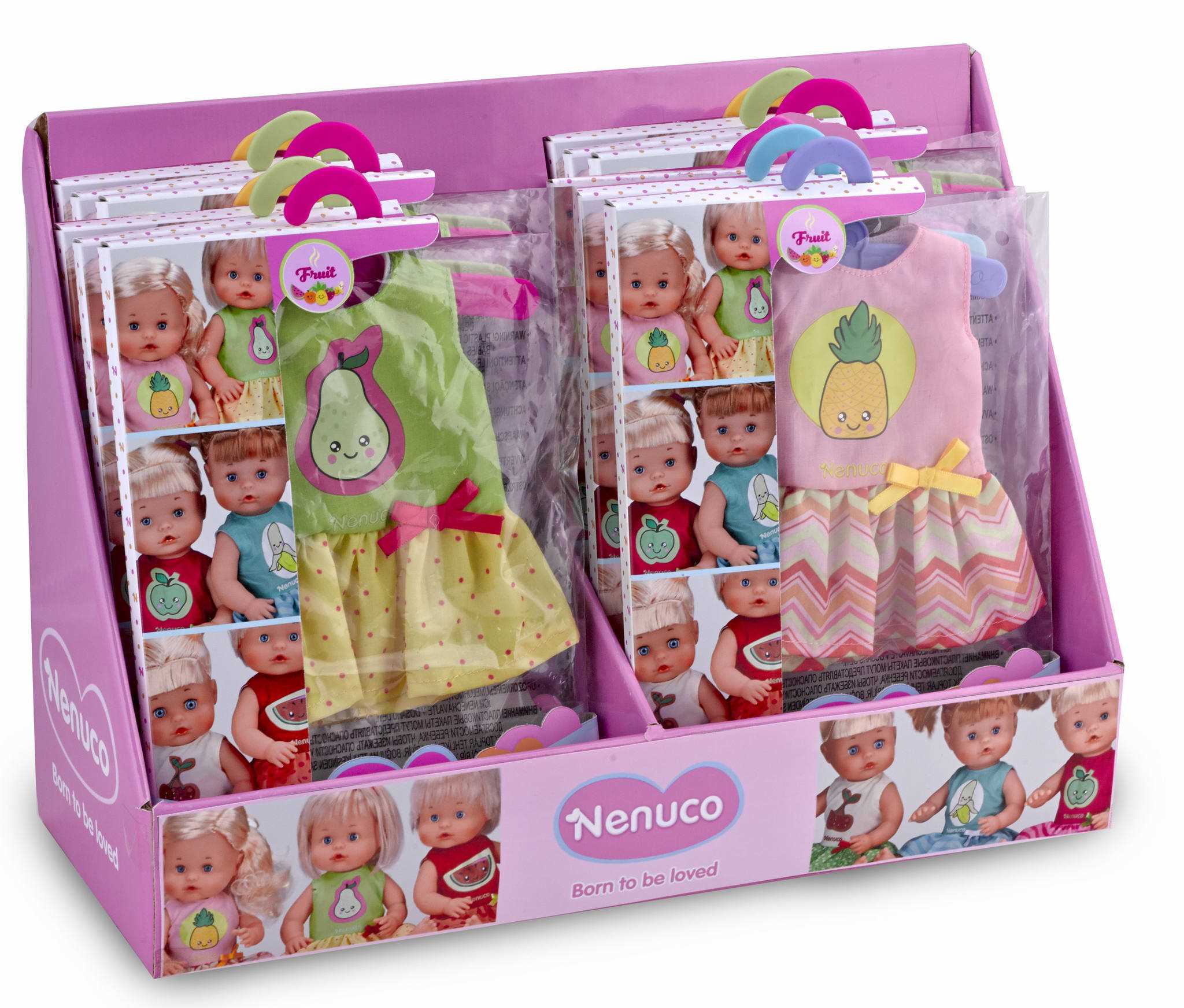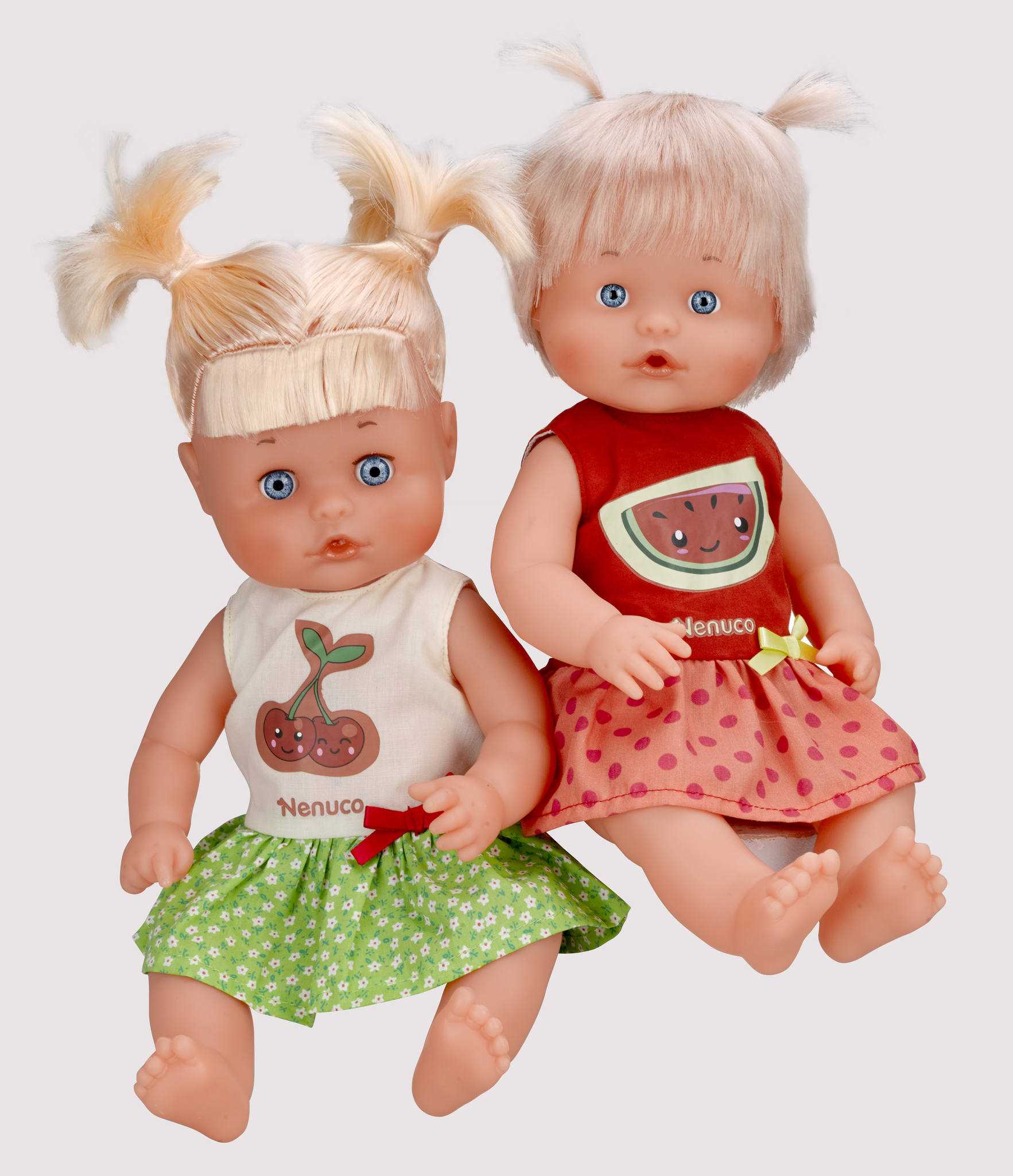Ya puedes ir preparándote para el verano y vestir a tu muñeco Nenuco bien fresquito. Será la envidia del barrio, coloridos vestidos para que elijas los que más se ajustan a tu personalidad. Llevan una fruta como imagen principal en su camiseta y un divertido lazo a juego, en la cintura.