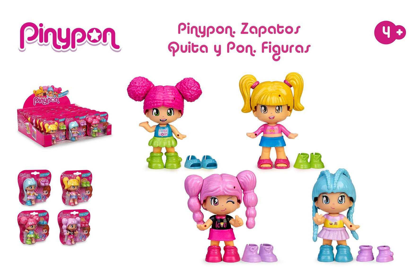 Las nuevas Pinypon llevan nuevos looks de moda y zapatos Quita y Pon. Surtido de 4 diferentes figuras, cada una lleva 2 distintos pares de zapatos para ir cambiando.