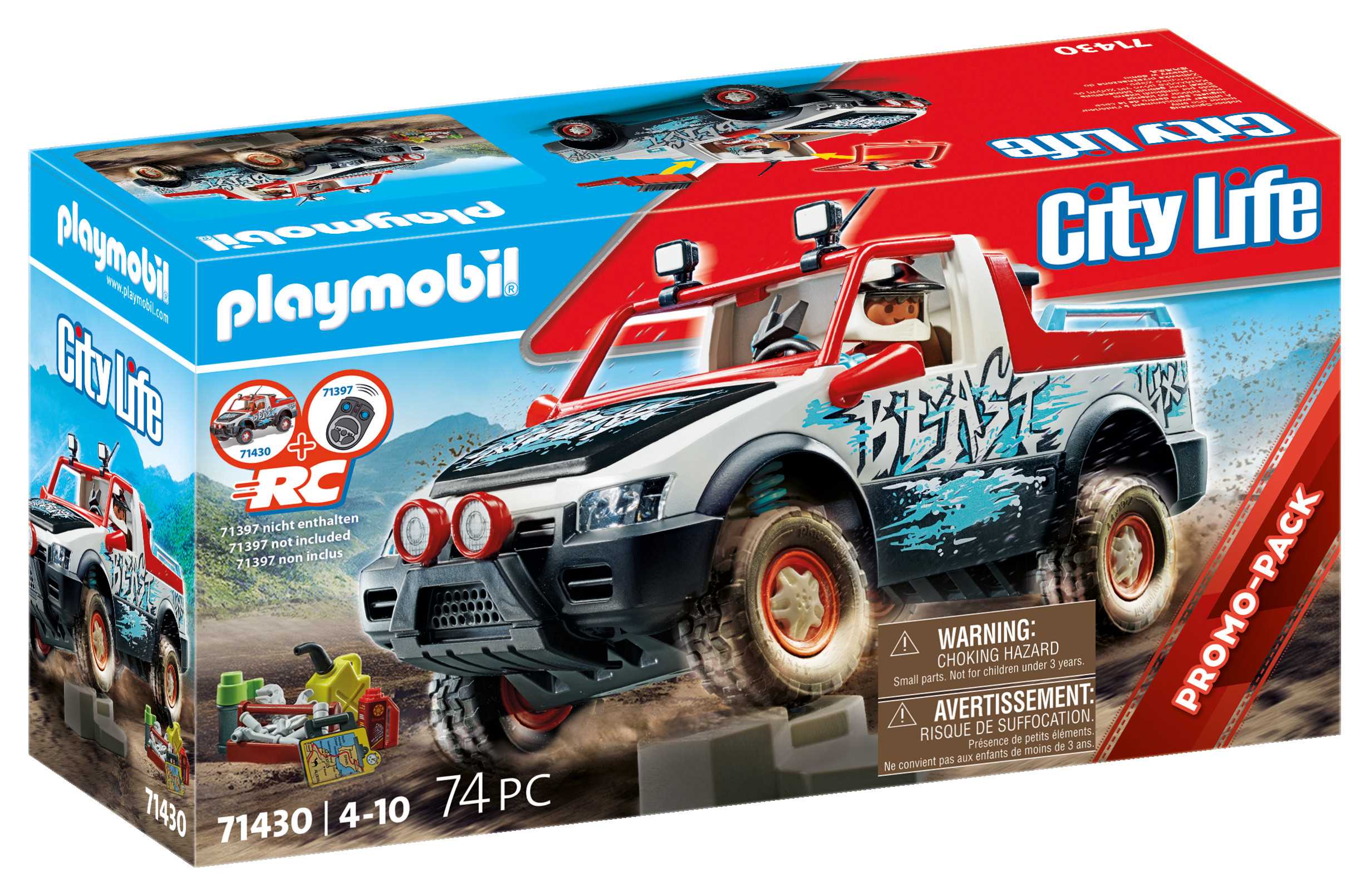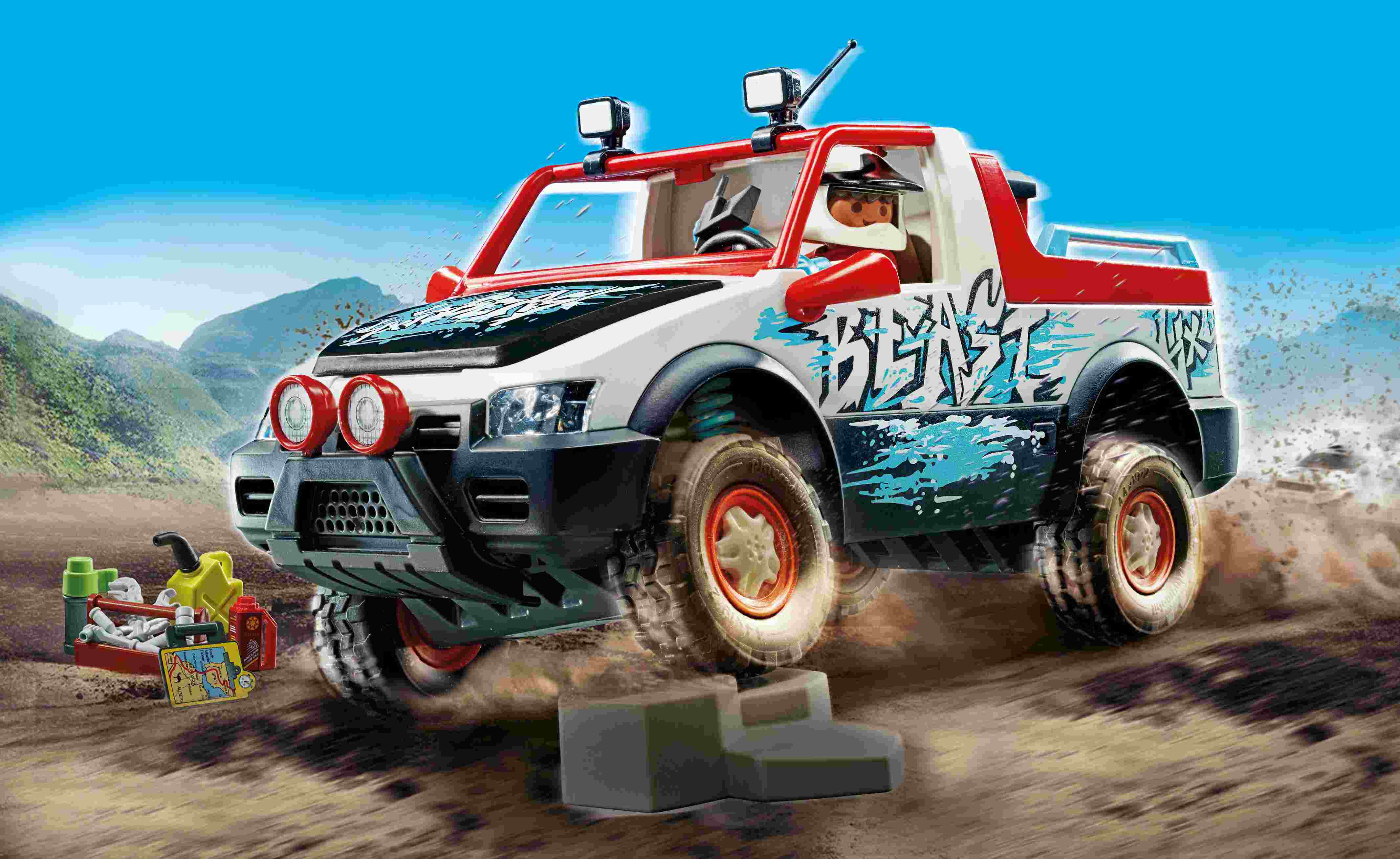 ¡Acelera en la pista con el genial Coche de Rally de PLAYMOBIL! Ponte el casco y comienza la siguiente carrera con el piloto de rally de PLAYMOBIL. Gracias a su eje delantero móvil, el vehículo se adapta sin esfuerzo a cualquier terreno. Al abrir el capó, se revela el bloque del motor. Retira la barra antivuelco para insertar las figuras. La camioneta es compatible con control remoto (RC) y se puede combinar tanto con el set de módulo RC de 2.4 GHz (6914) como con el set de módulo RC Bluetooth (71397, se vende por separado). Un gran set de juego para una diversión llena de acción y juegos de rol en la habitación de los niños