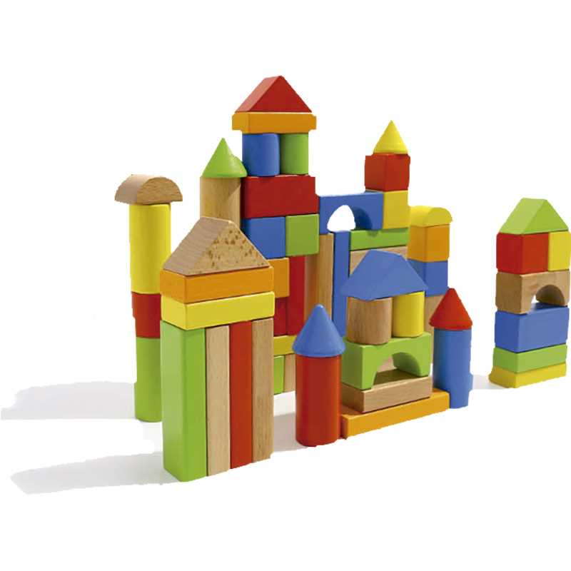 Los peques construirán su propio castillo con este juego de bloques de construcción fabricado en madera. Este juego incluye 100 piezas de diferentes colores y forma