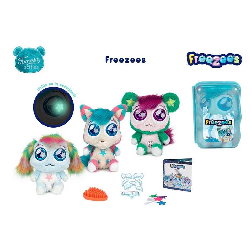 Los Freezees son unos peluches que vienen en un cubito de hielo y tendrás que abrazarlos para que su corazón cambie de color. Quítale el hielo y verás qué peluche te ha tocado: Icy Glu, Iggy Glu o Glacy Glu (se venden por separado) con un montón de accesorios.