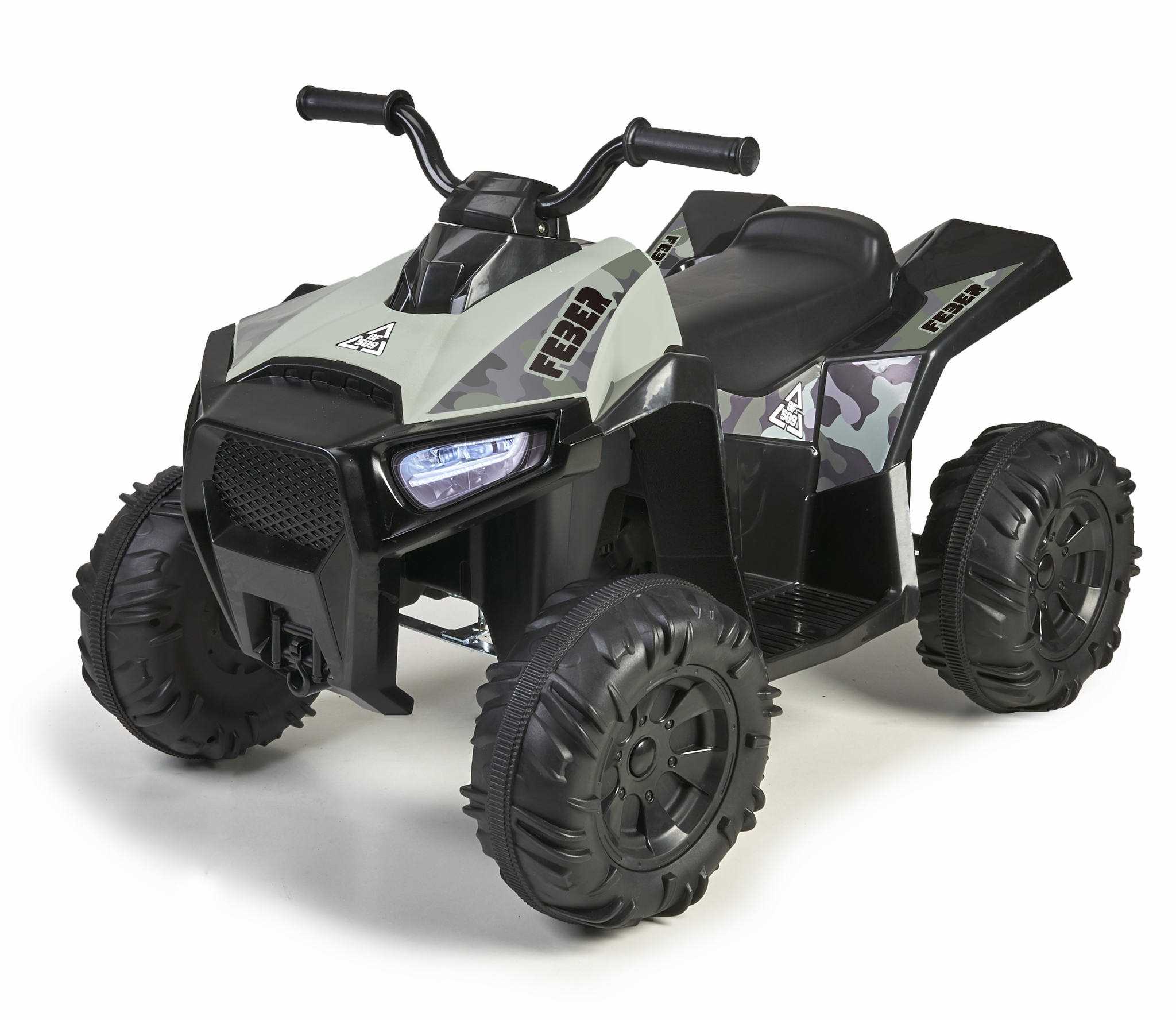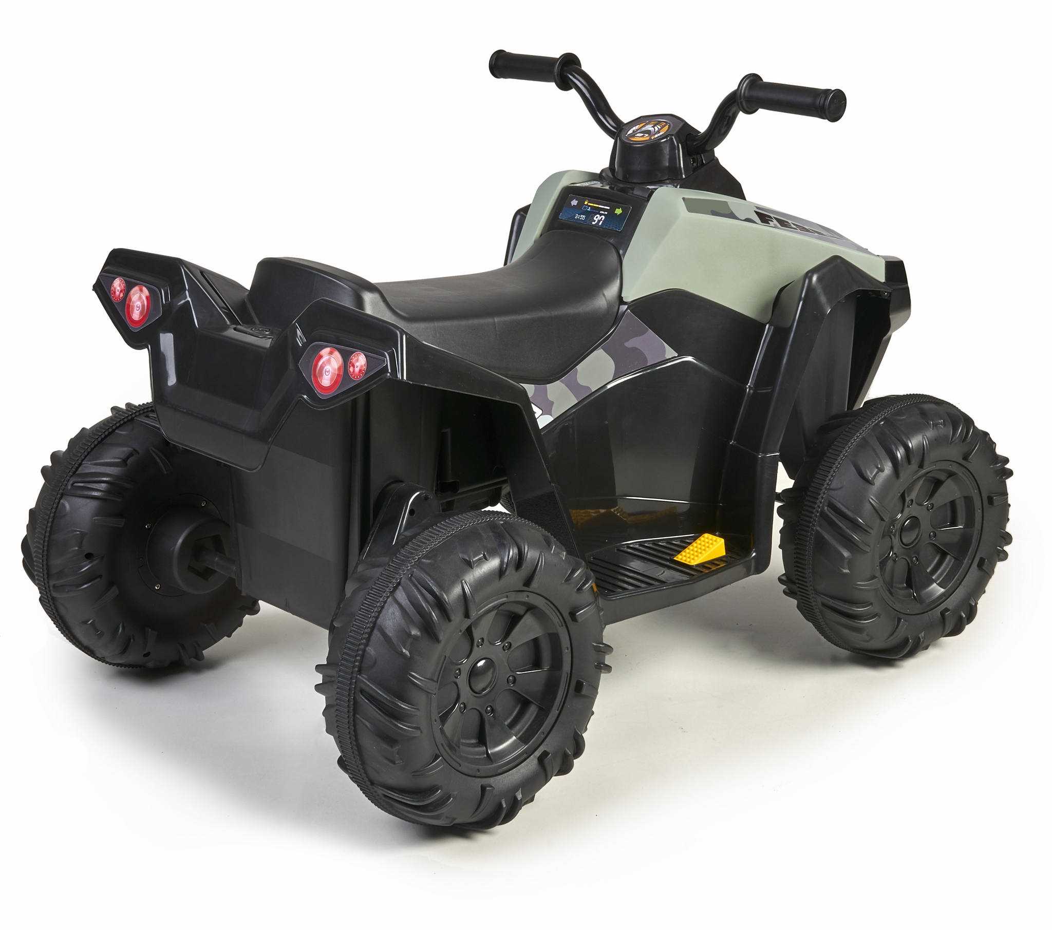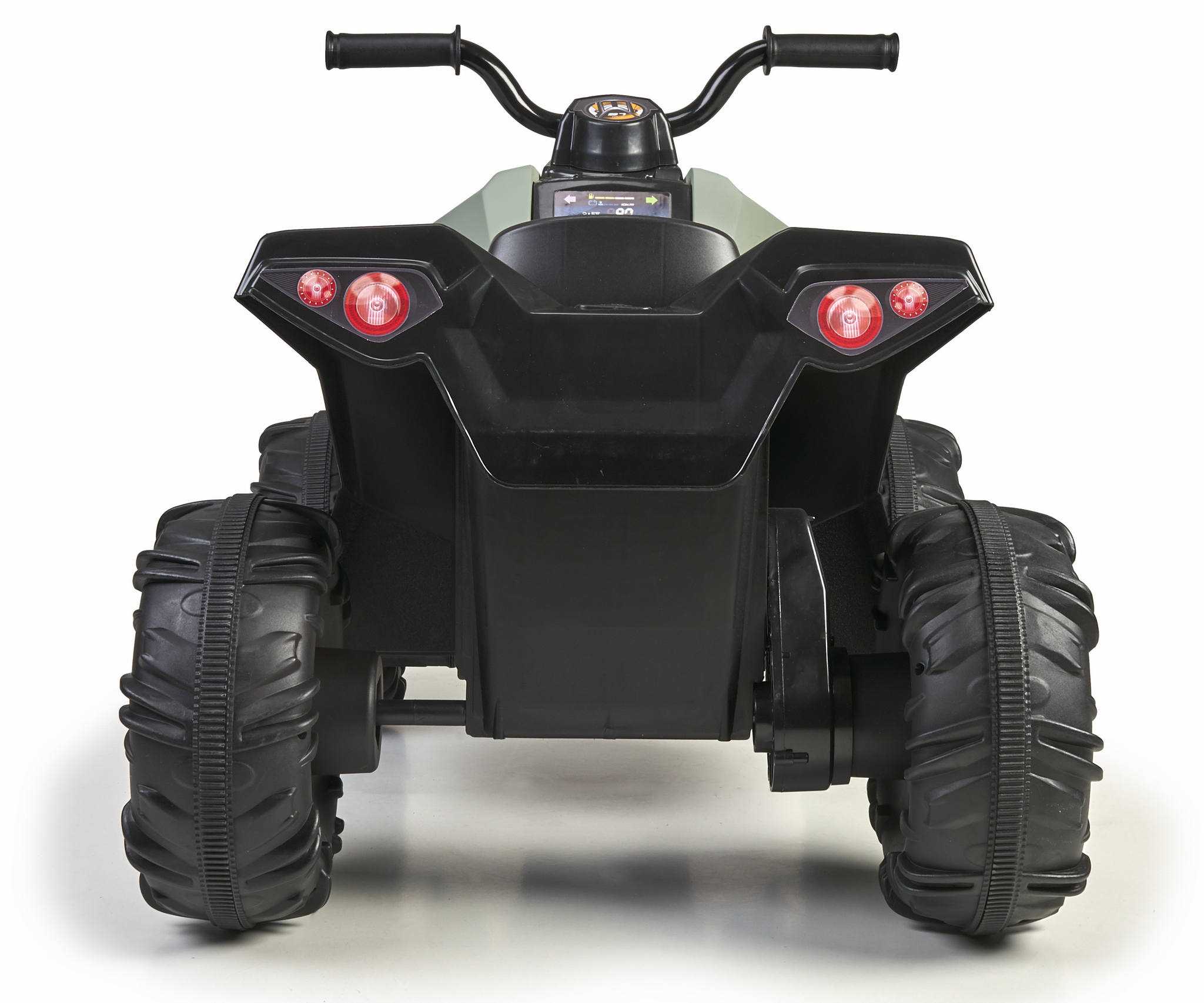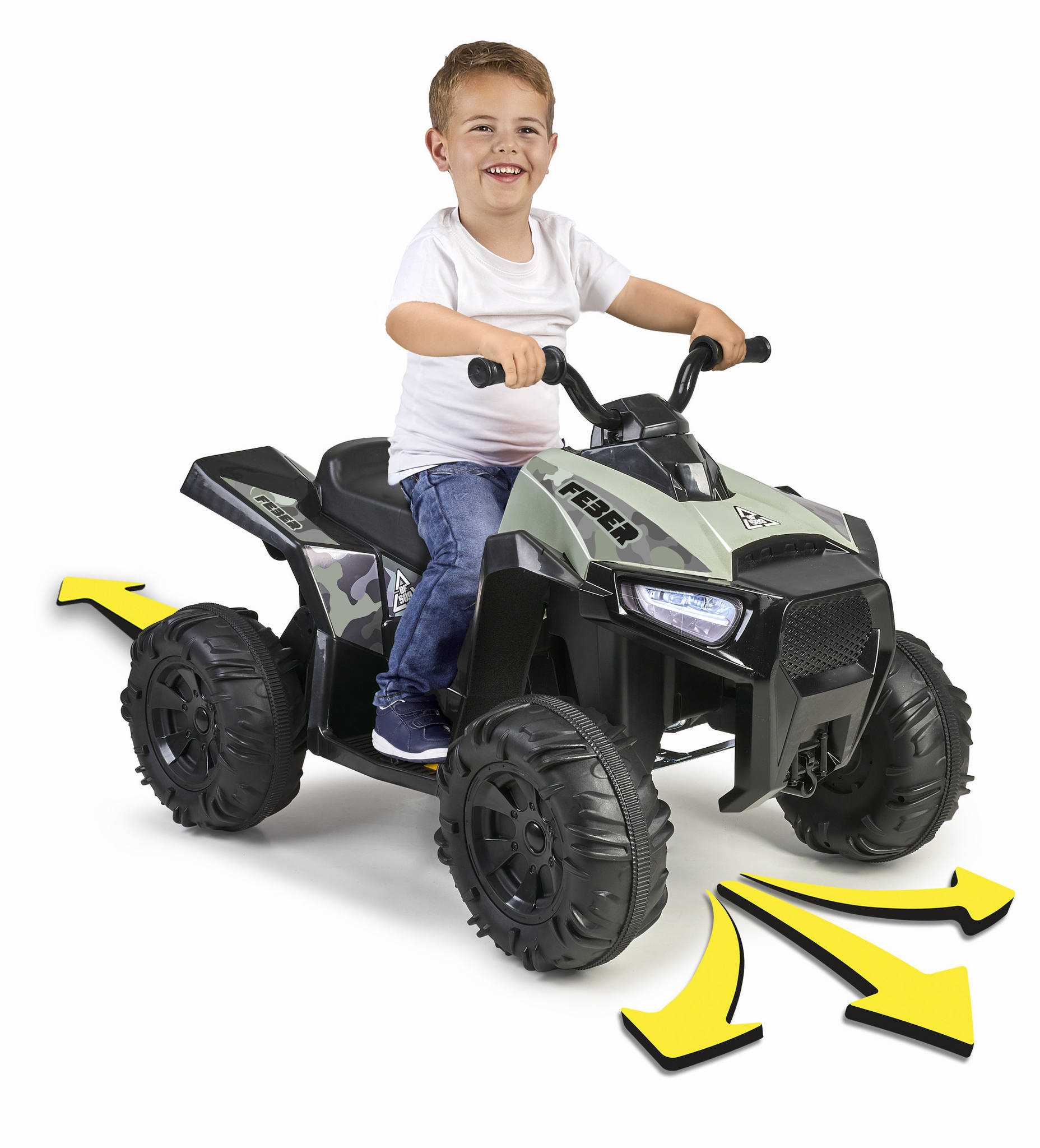 Quad Boxer 12V tiene marcha hacia adelante y atrás y freno en el pie. Sus ruedas robustas ayudan a mejorar la estabilidad y alcanza hasta los 5 km/h. Para niño y niña desde los 3 hasta los 7 años. Peso máximo recomendado de 30 Kg. Quad eléctrico con batería 12V ¡para disfrutar a lo