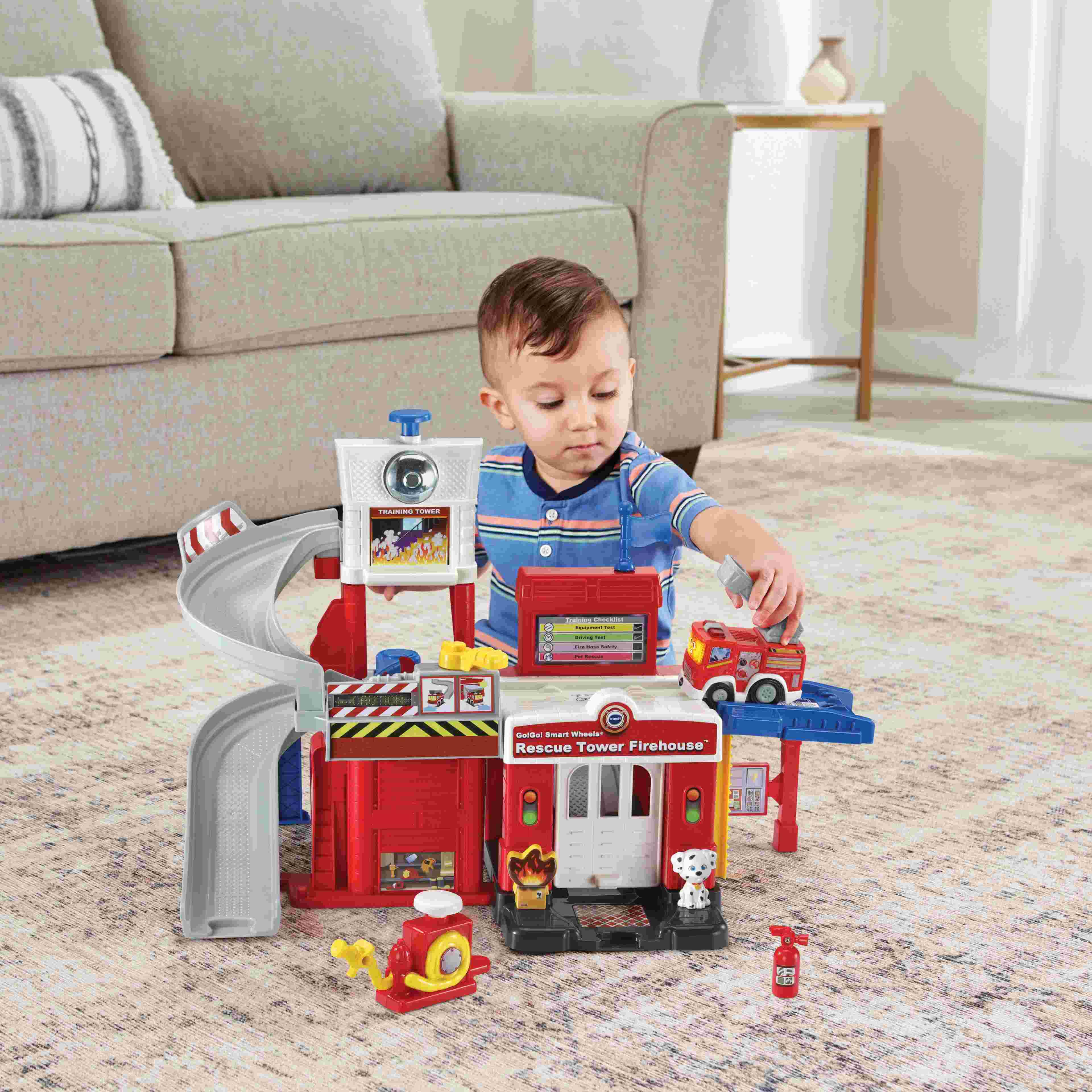 Vive una aventura apasionante en cada uno de los diferentes escenarios del Parque de bomberos. Deja volar tu imaginación, completa tu misión y vuelve a la base para un merecido descanso. Incluye el vehículo Valiente, camión de bomberos con más de 50 respuestas de voz y música.