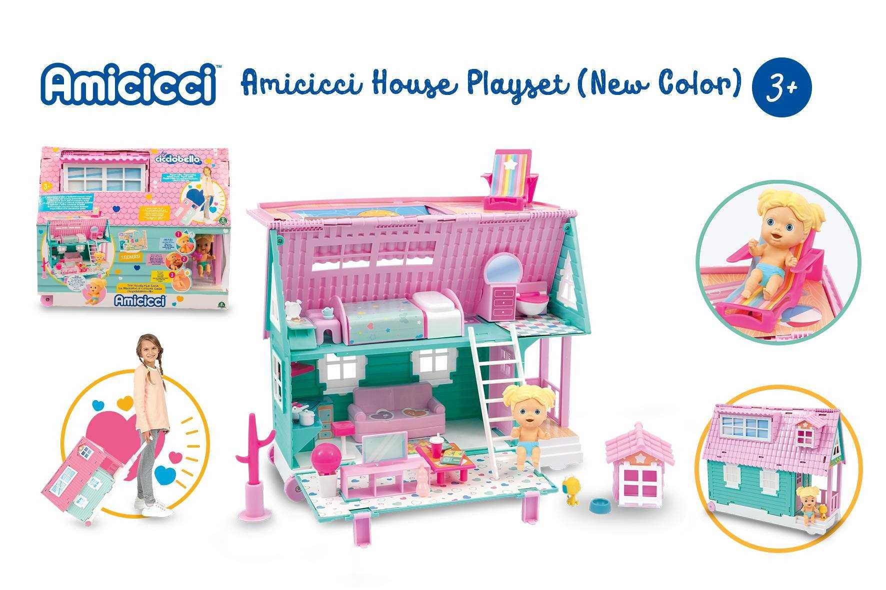 La nueva casa de los adorables amicicci es un estupendo playset con muchas habitaciones y accesorios.Cuenta con una casita para la mascota.