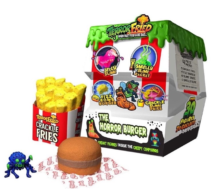 Aplasta y rompe las "Patatas Crujientes" y observa cómo sale la baba para revelar otro personaje.