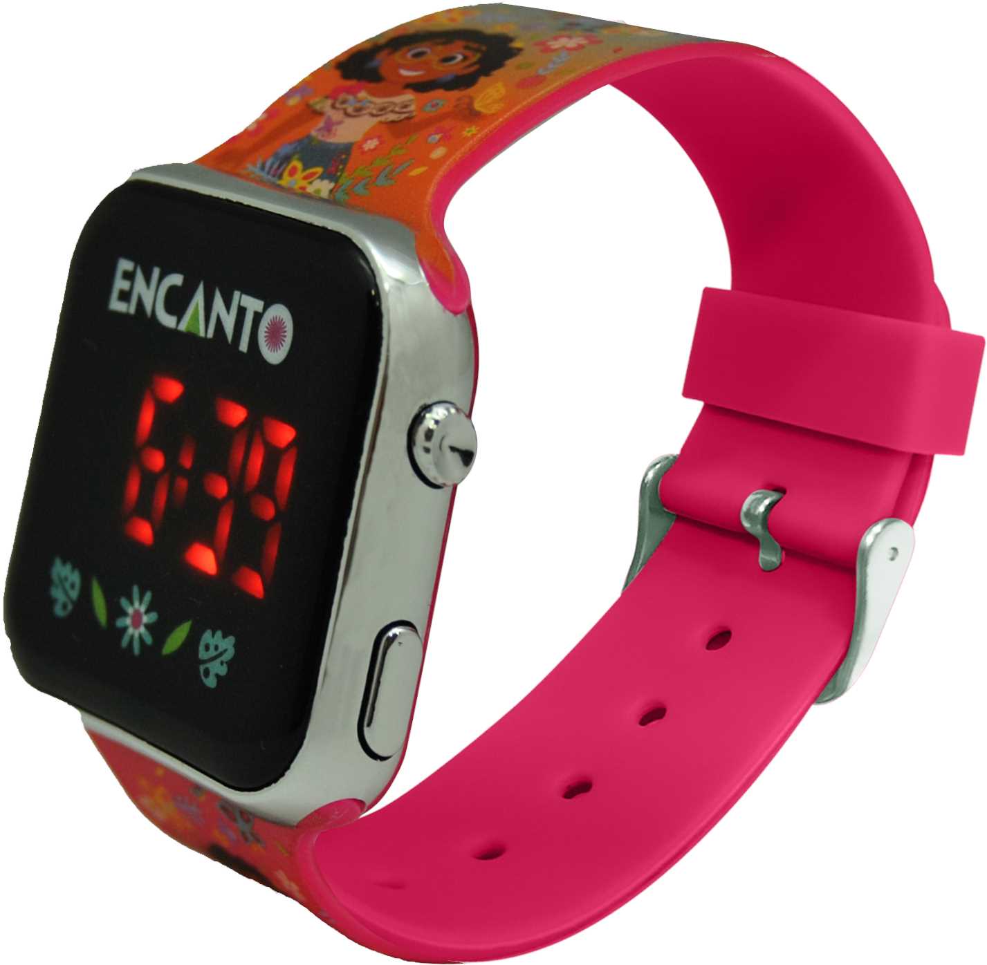 Si tu peque es amante de la película Disney de moda y le encanta vivir una y otra vez las canciones de los personajes de Encanto, este es el reloj que necesita. Con funciones de hora de 12 horas y modo de fecha completa (mes y día), irá super bien equipada para no llegar tarde a ningún sitio. Este reloj con batería es el accesorio ideal para llevarlo a todas partes.