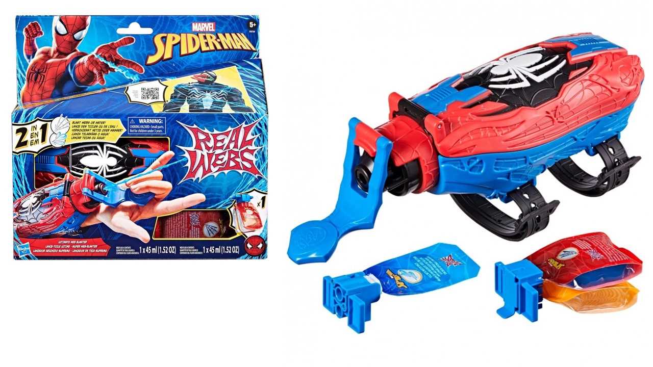 Lanzador Spider-Man Real Webs para que imagines que eres tú superhéroe arácnido favorito mientras juegas con tus amigos e imaginas heroicas historias y batallas. ¡Recarga y prepárate para la batalla