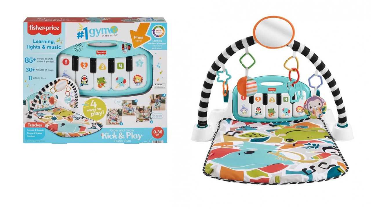 Consigue que tu pequeño se mueva, disfrute (y aprenda) con el Gimnasio-piano Pataditas Glow and Grow? de Fisher-Price. Esta alfombra de actividades suave para bebés cuenta con un arco de juguete de alto contraste de posición ajustable y 10 juguetes colgantes. El piano desmontable con 5 teclas que se iluminan ofrece un espectáculo de luces multicolor e incluye 4 configuraciones musicales que se adaptan al bebé a medida que crece, desde que es un recién nacido hasta que se hace mayor. Cuenta con tres niveles de aprendizaje Smart Stages?, además de un modo de estilo libre adicional con notas de piano reales. Este juguete aporta diversión y variedad a los ratos de juego de tu pequeño virtuoso, que puede tumbarse como quiera para jugar, tanto boca arriba como boca abajo, o sentarse para hacer sonar la música