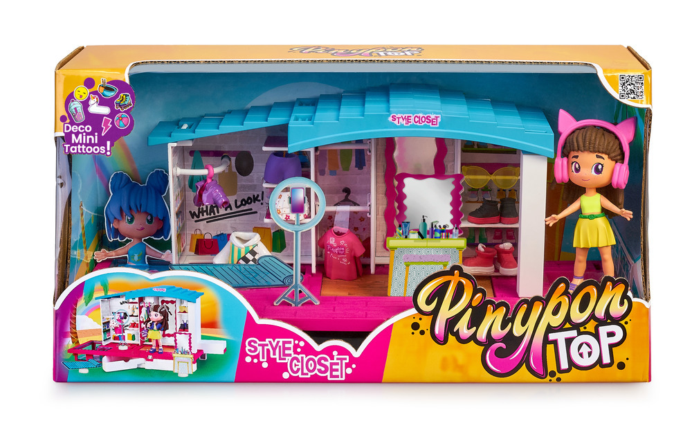 Get Ready con Pinypon TOP y el Style Closet. Vestidor lleno de ropa, zapatos y accesorios intercambiables para crear el outfi t más TOP. Incluye una chica Pinypon