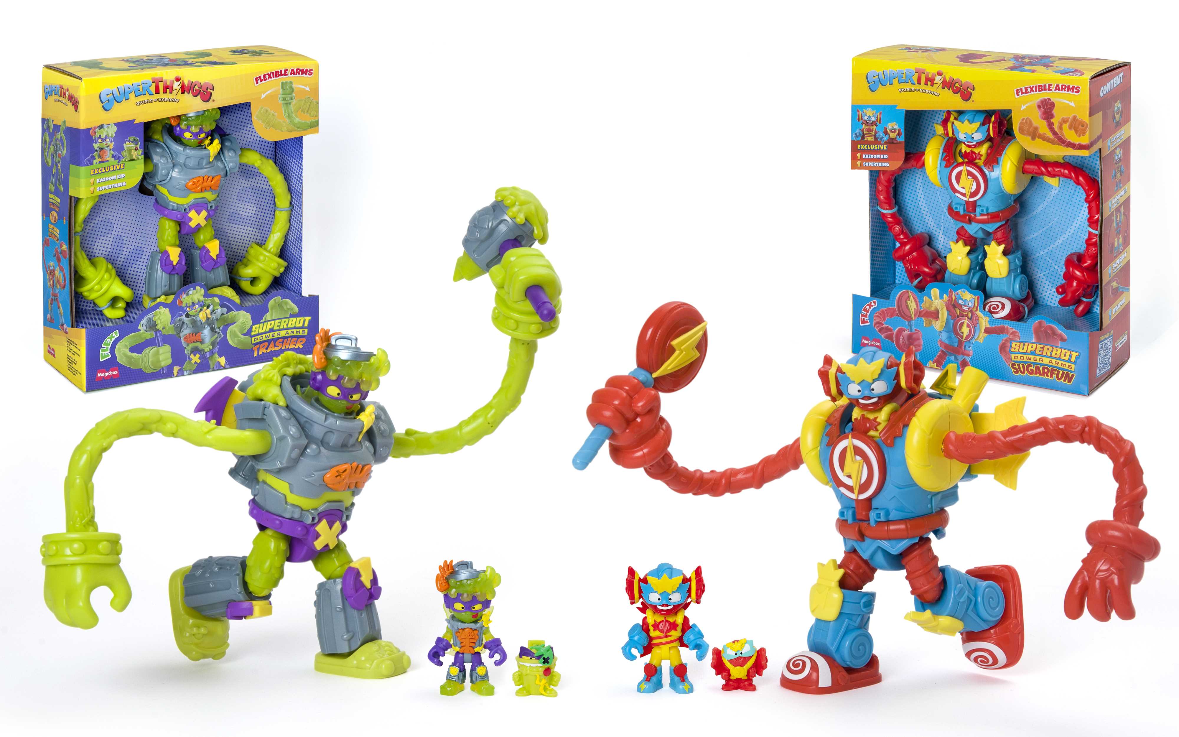 ¡DESAFÍA A LOS HÉROES! – ¡Llega el superbot Trasher! Descubre sus poderosos brazos extralargos moldeables: ponlos en mil posturas diferentes, retuércelos, despliégalos. ¡Imaginación al poder! FIGURAS EXCLUSIVAS – Contiene 1 Kazoom Kid y 1 SuperThing héroe exclusivos GRAN JUGABILIDAD – Gracias a las armas de estos nuevos Superbots y sus alas, ¡la batalla continua por tierra y aire! ELIGE TU PILOTO – Pueden ser pilotados tanto por un Superthing como por un Kazoom Kid. DIVERSIÓN ASEGURADA –