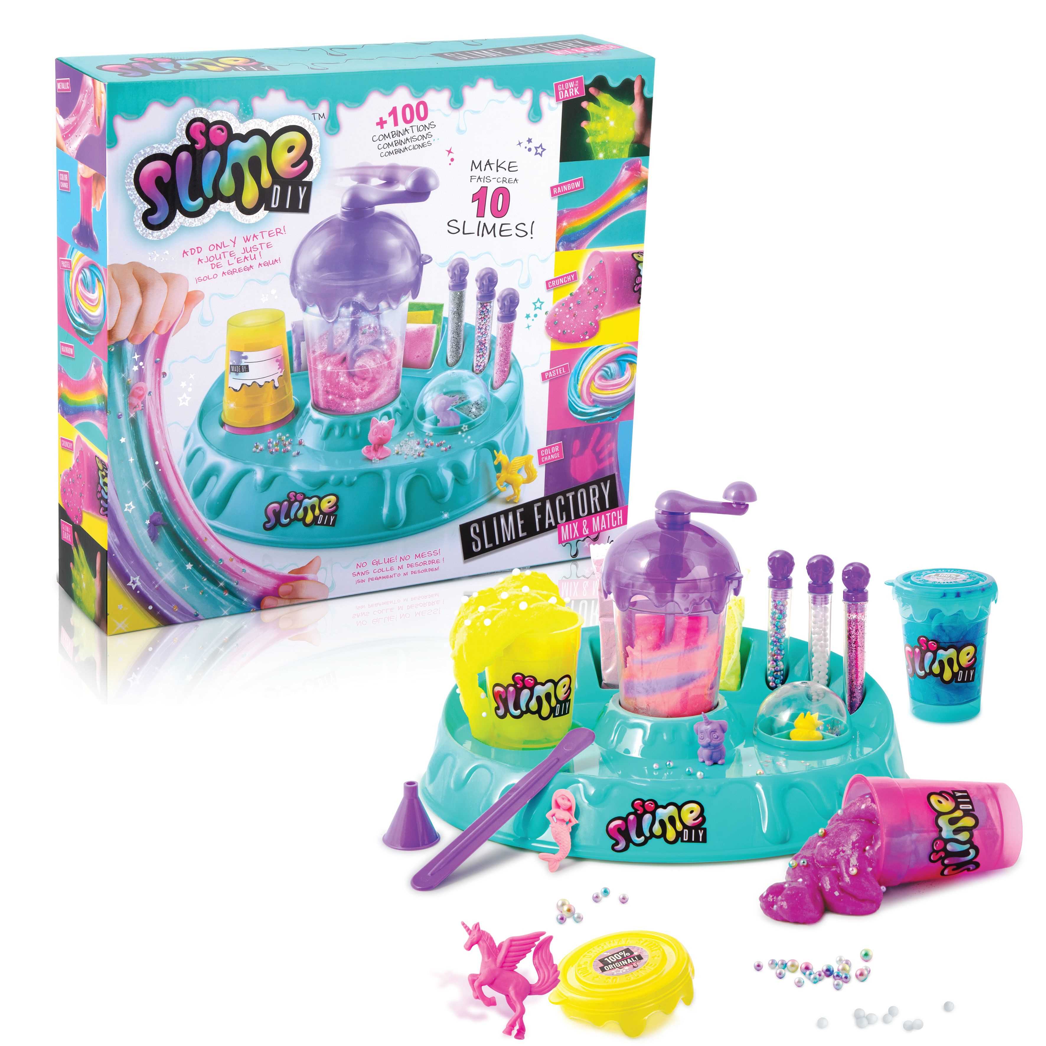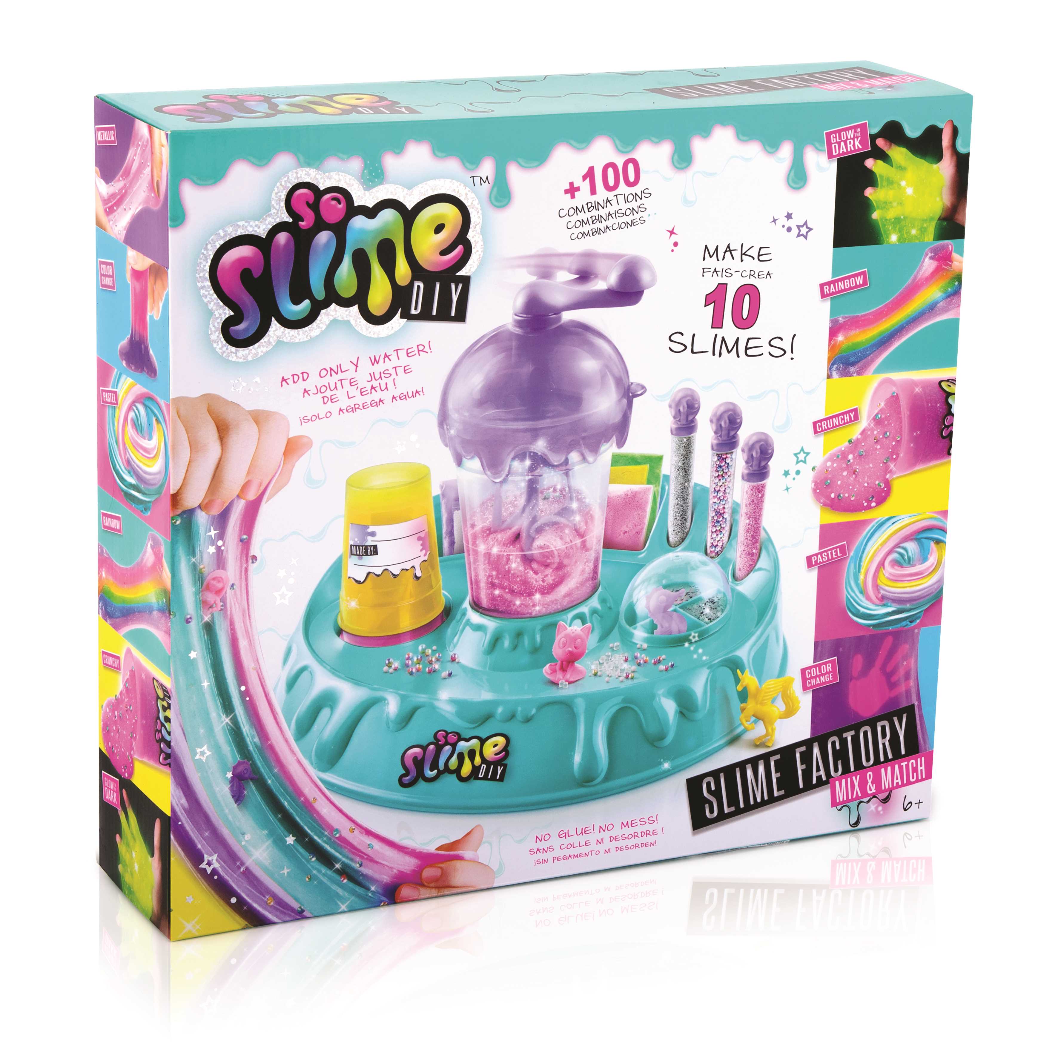 Haz tus propios Slime gracias a esta fabrica y sus accesorios inlcuidos.Mezcla colores y decoraciones para conseguir tu Slime de moda.